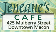 This delightful cafe located in downtown Macon, Georgia is open for breakfast and lunch with home style cooking. Visit them today or have your meal delivered in the downtown area. Jeneane's Cafe would love to serve you or cater your next event. They also have gift certificates.